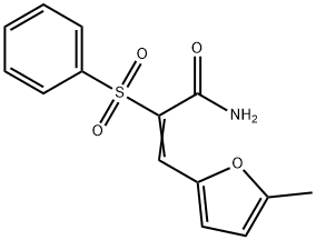 - Synonyms: (E)-2-(benzenesulfonyl)-3-(5-methylfuran-2-yl)prop-2-enamide 2-Propenamide, 3-(5-methyl-2-furanyl)-2-(phenylsulfonyl)-