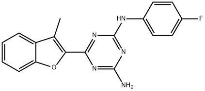 - Synonyms: 2-N-(4-fluorophenyl)-6-(3-methyl-1-benzofuran-2-yl)-1,3,5-triazine-2,4-diamine 1,3,5-Triazine-2,4-diamine, N2-(4-fluorophenyl)-6-(3-methyl-2-benzofuranyl)-