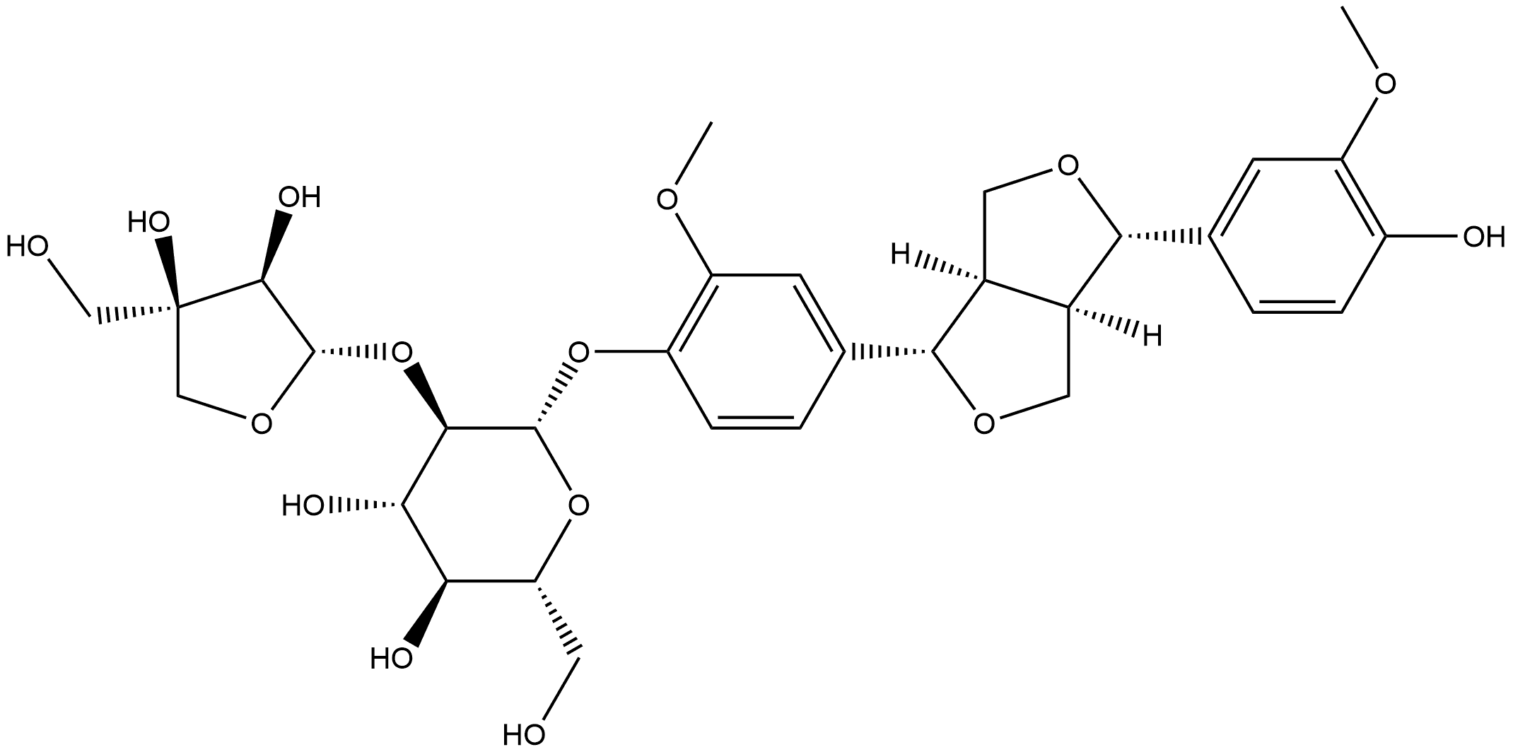 - Product Name:2-Methoxy-4-[(1S,3aR,4S,6aR)-tetrahydro-4-(4-hydroxy-3-methoxyphenyl)-1H,3H-furo[3,4-c]furan-1-yl]phenyl 2-O-D-apio-β-D-furanosyl-β-D-glucopyranoside