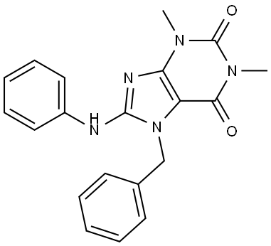 - Synonyms: 8-ANILINO-7-BENZYL-1,3-DIMETHYL-3,7-DIHYDRO-1H-PURINE-2,6-DIONE 1H-Purine-2,6-dione, 3,7-dihydro-1,3-dimethyl-8-(phenylamino)-7-(phenylmethyl)-