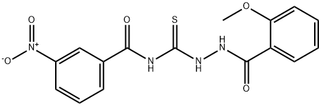 - Synonyms: N-{[2-(2-methoxybenzoyl)hydrazino]carbonothioyl}-3-nitrobenzamide N-({2-[(2-methoxyphenyl)carbonyl]hydrazinyl}carbonothioyl)-3-nitrobenzamide Benzoic acid, 2-methoxy-, 2-[[(3-nitrobenzoyl)amino]thioxomethyl]hydrazide