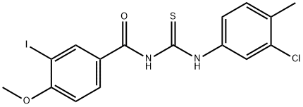 - Synonyms: N-{[(3-chloro-4-methylphenyl)amino]carbonothioyl}-3-iodo-4-methoxybenzamide Benzamide, N-[[(3-chloro-4-methylphenyl)amino]thioxomethyl]-3-iodo-4-methoxy-