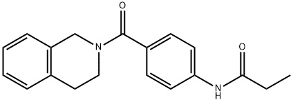 - Synonyms: N-[4-(3,4-dihydro-1H-isoquinoline-2-carbonyl)phenyl]propanamide Propanamide, N-[4-[(3,4-dihydro-2(1H)-isoquinolinyl)carbonyl]phenyl]-