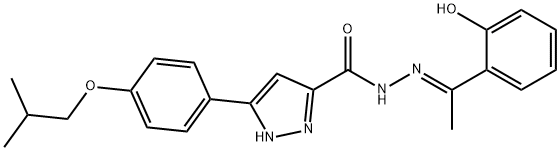 - Synonyms: N'-[(1E)-1-(2-hydroxyphenyl)ethylidene]-3-[4-(2-methylpropoxy)phenyl]-1H-pyrazole-5-carbohydrazide 1H-Pyrazole-3-carboxylic acid, 5-[4-(2-methylpropoxy)phenyl]-, (2E)-2-[1-(2-hydroxyphenyl)ethylidene]hydrazide N'-(1-(2-HO-PH)ETHYLIDENE)-3-(4-ISOBUTOXYPHENYL)-1H-PYRAZOLE-5-CARBOHYDRAZIDE N'-(1-(2-HO-PH)ETHYLIDENE)-3-(4-ISOBUTOXYPHENYL)-1H-PYRAZOLE-5-CARBOHYDRAZIDE