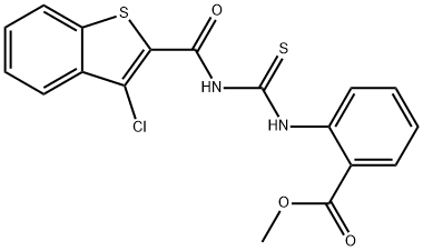 - Synonyms: methyl 2-[({[(3-chloro-1-benzothien-2-yl)carbonyl]amino}carbonothioyl)amino]benzoate Benzoic acid, 2-[[[[(3-chlorobenzo[b]thien-2-yl)carbonyl]amino]thioxomethyl]amino]-, methyl ester