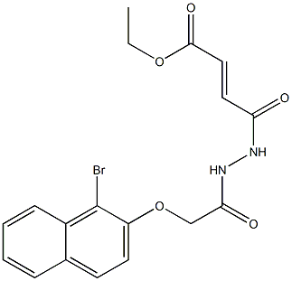 - Synonyms: ethyl (E)-4-[2-[2-(1-bromonaphthalen-2-yl)oxyacetyl]hydrazinyl]-4-oxobut-2-enoate ethyl 4-(2-{[(1-bromo-2-naphthyl)oxy]acetyl}hydrazino)-4-oxo-2-butenoate 2-Butenedioic acid, 1-ethyl ester, 4-[2-[2-[(1-bromo-2-naphthalenyl)oxy]acetyl]hydrazide]