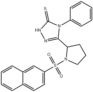 - Synonyms: 5-[1-(naphthalen-2-ylsulfonyl)pyrrolidin-2-yl]-4-phenyl-4H-1,2,4-triazole-3-thiol 3H-1,2,4-Triazole-3-thione, 2,4-dihydro-5-[1-(2-naphthalenylsulfonyl)-2-pyrrolidinyl]-4-phenyl-