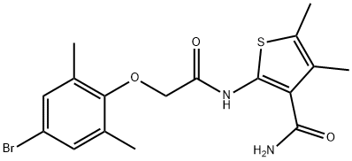 - Synonyms: 2-{[(4-bromo-2,6-dimethylphenoxy)acetyl]amino}-4,5-dimethyl-3-thiophenecarboxamide 3-Thiophenecarboxamide, 2-[[2-(4-bromo-2,6-dimethylphenoxy)acetyl]amino]-4,5-dimethyl-
