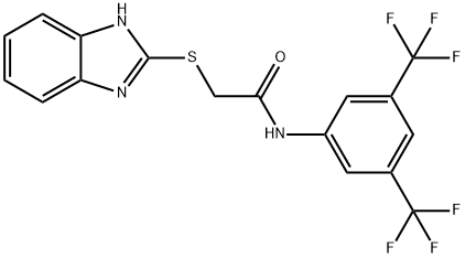 - Synonyms: 2-(1H-benzimidazol-2-ylsulfanyl)-N-[3,5-bis(trifluoromethyl)phenyl]acetamide Acetamide, 2-(1H-benzimidazol-2-ylthio)-N-[3,5-bis(trifluoromethyl)phenyl]-