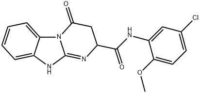 - Synonyms: N-(5-chloro-2-methoxyphenyl)-4-oxo-1,2,3,4-tetrahydropyrimido[1,2-a]benzimidazole-2-carboxamide Pyrimido[1,2-a]benzimidazole-2-carboxamide, N-(5-chloro-2-methoxyphenyl)-2,3,4,10-tetrahydro-4-oxo-