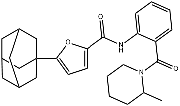 - Synonyms: N-{2-[(2-methylpiperidin-1-yl)carbonyl]phenyl}-5-(tricyclo[3.3.1.1~3,7~]dec-1-yl)furan-2-carboxamide 2-Furancarboxamide, N-[2-[(2-methyl-1-piperidinyl)carbonyl]phenyl]-5-tricyclo[3.3.1.13,7]dec-1-yl-