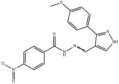- Synonyms: (Z)-N'-((3-(4-methoxyphenyl)-1H-pyrazol-4-yl)methylene)-4-nitrobenzohydrazide Benzoic acid, 4-nitro-, 2-[[3-(4-methoxyphenyl)-1H-pyrazol-4-yl]methylene]hydrazide