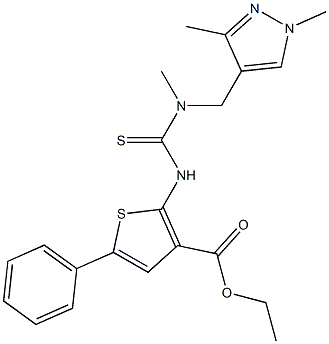 - Product Name:ethyl 2-(3-((1,3-dimethyl-1H-pyrazol-4-yl)methyl)-3-methylthioureido)-5-phenylthiophene-3-carboxylate