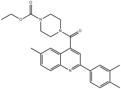 - Synonyms: ethyl 4-(2-(3,4-dimethylphenyl)-6-methylquinoline-4-carbonyl)piperazine-1-carboxylate 1-Piperazinecarboxylic acid, 4-[[2-(3,4-dimethylphenyl)-6-methyl-4-quinolinyl]carbonyl]-, ethyl ester