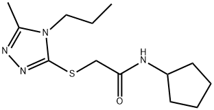 - Synonyms: N-cyclopentyl-2-[(5-methyl-4-propyl-1,2,4-triazol-3-yl)sulfanyl]acetamide Acetamide, N-cyclopentyl-2-[(5-methyl-4-propyl-4H-1,2,4-triazol-3-yl)thio]-