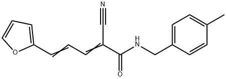 - Synonyms: (2Z,4E)-2-cyano-5-(furan-2-yl)-N-[(4-methylphenyl)methyl]penta-2,4-dienamide 2,4-Pentadienamide, 2-cyano-5-(2-furanyl)-N-[(4-methylphenyl)methyl]-