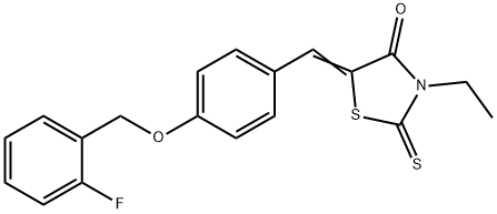 - Synonyms: (5E)-3-ethyl-5-[[4-[(2-fluorophenyl)methoxy]phenyl]methylidene]-2-sulfanylidene-1,3-thiazolidin-4-one 4-Thiazolidinone, 3-ethyl-5-[[4-[(2-fluorophenyl)methoxy]phenyl]methylene]-2-thioxo-