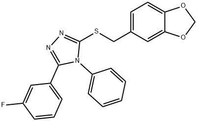 - Synonyms: 3-(1,3-benzodioxol-5-ylmethylsulfanyl)-5-(3-fluorophenyl)-4-phenyl-1,2,4-triazole 4H-1,2,4-Triazole, 3-[(1,3-benzodioxol-5-ylmethyl)thio]-5-(3-fluorophenyl)-4-phenyl-