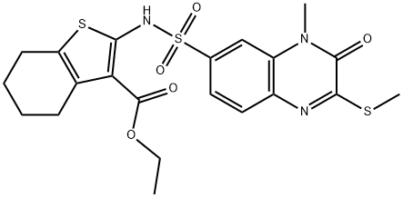 - Synonyms: ethyl 2-[(4-methyl-2-methylsulfanyl-3-oxoquinoxalin-6-yl)sulfonylamino]-4,5,6,7-tetrahydro-1-benzothiophene-3-carboxylate Benzo[b]thiophene-3-carboxylic acid, 2-[[[3,4-dihydro-4-methyl-2-(methylthio)-3-oxo-6-quinoxalinyl]sulfonyl]amino]-4,5,6,7-tetrahydro-, ethyl ester