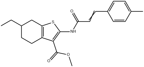 - Synonyms: methyl 6-ethyl-2-[[(E)-3-(4-methylphenyl)prop-2-enoyl]amino]-4,5,6,7-tetrahydro-1-benzothiophene-3-carboxylate Benzo[b]thiophene-3-carboxylic acid, 6-ethyl-4,5,6,7-tetrahydro-2-[[3-(4-methylphenyl)-1-oxo-2-propen-1-yl]amino]-, methyl ester