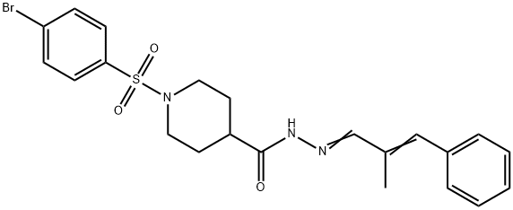 - Synonyms: 1-(4-bromophenyl)sulfonyl-N-[(E)-[(E)-2-methyl-3-phenylprop-2-enylidene]amino]piperidine-4-carboxamide 4-Piperidinecarboxylic acid, 1-[(4-bromophenyl)sulfonyl]-, 2-(2-methyl-3-phenyl-2-propen-1-ylidene)hydrazide