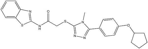 - Synonyms: N-(1,3-benzothiazol-2-yl)-2-[[5-(4-cyclopentyloxyphenyl)-4-methyl-1,2,4-triazol-3-yl]sulfanyl]acetamide