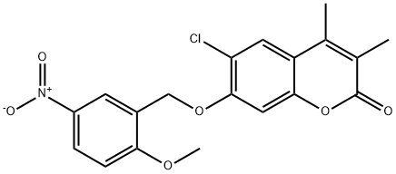 - Synonyms: 6-chloro-7-[(2-methoxy-5-nitrophenyl)methoxy]-3,4-dimethylchromen-2-one 2H-1-Benzopyran-2-one, 6-chloro-7-[(2-methoxy-5-nitrophenyl)methoxy]-3,4-dimethyl-