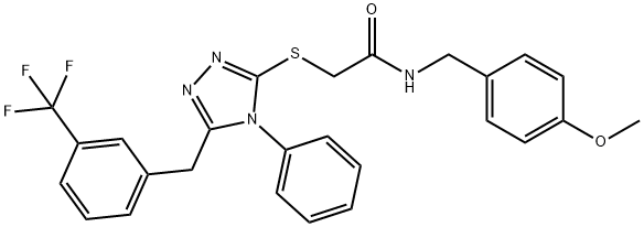 - Synonyms: N-[(4-methoxyphenyl)methyl]-2-[[4-phenyl-5-[[3-(trifluoromethyl)phenyl]methyl]-1,2,4-triazol-3-yl]sulfanyl]acetamide Acetamide, N-[(4-methoxyphenyl)methyl]-2-[[4-phenyl-5-[[3-(trifluoromethyl)phenyl]methyl]-4H-1,2,4-triazol-3-yl]thio]-