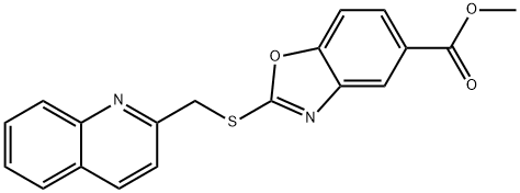 - Synonyms: methyl 2-(quinolin-2-ylmethylsulfanyl)-1,3-benzoxazole-5-carboxylate 5-Benzoxazolecarboxylic acid, 2-[(2-quinolinylmethyl)thio]-, methyl ester