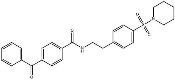 - Synonyms: 4-benzoyl-N-[2-(4-piperidin-1-ylsulfonylphenyl)ethyl]benzamide Benzamide, 4-benzoyl-N-[2-[4-(1-piperidinylsulfonyl)phenyl]ethyl]-