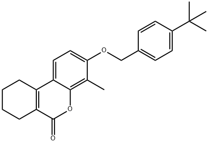 - Synonyms: 3-[(4-tert-butylphenyl)methoxy]-4-methyl-7,8,9,10-tetrahydrobenzo[c]chromen-6-one 6H-Dibenzo[b,d]pyran-6-one, 3-[[4-(1,1-dimethylethyl)phenyl]methoxy]-7,8,9,10-tetrahydro-4-methyl-
