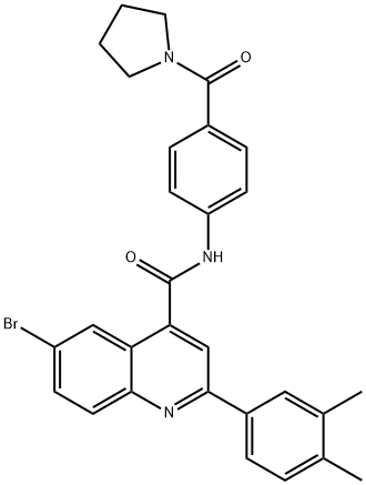 - Synonyms: 6-bromo-2-(3,4-dimethylphenyl)-N-[4-(pyrrolidine-1-carbonyl)phenyl]quinoline-4-carboxamide 4-Quinolinecarboxamide, 6-bromo-2-(3,4-dimethylphenyl)-N-[4-(1-pyrrolidinylcarbonyl)phenyl]-