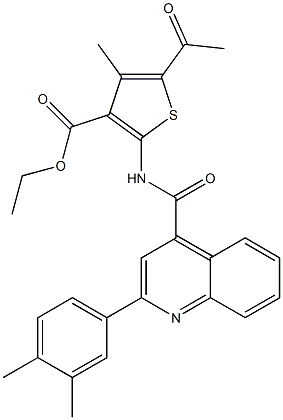 - Synonyms: ethyl 5-acetyl-2-[[2-(3,4-dimethylphenyl)quinoline-4-carbonyl]amino]-4-methylthiophene-3-carboxylate