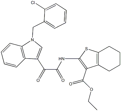 - Synonyms: ethyl 2-[[2-[1-[(2-chlorophenyl)methyl]indol-3-yl]-2-oxoacetyl]amino]-4,5,6,7-tetrahydro-1-benzothiophene-3-carboxylate