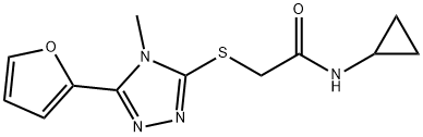 - Synonyms: N-cyclopropyl-2-[[5-(furan-2-yl)-4-methyl-1,2,4-triazol-3-yl]sulfanyl]acetamide Acetamide, N-cyclopropyl-2-[[5-(2-furanyl)-4-methyl-4H-1,2,4-triazol-3-yl]thio]-