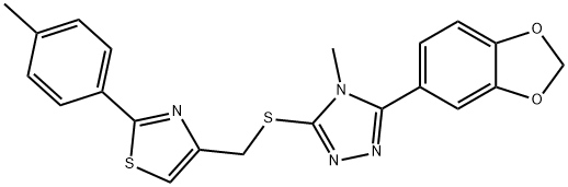 - Synonyms: 4-[[5-(1,3-benzodioxol-5-yl)-4-methyl-1,2,4-triazol-3-yl]sulfanylmethyl]-2-(4-methylphenyl)-1,3-thiazole 4H-1,2,4-Triazole, 3-(1,3-benzodioxol-5-yl)-4-methyl-5-[[[2-(4-methylphenyl)-4-thiazolyl]methyl]thio]-