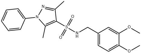 - Synonyms: N-[(3,4-dimethoxyphenyl)methyl]-3,5-dimethyl-1-phenylpyrazole-4-sulfonamide 1H-Pyrazole-4-sulfonamide, N-[(3,4-dimethoxyphenyl)methyl]-3,5-dimethyl-1-phenyl-