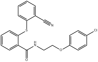 - Synonyms: N-[2-(4-chlorophenoxy)ethyl]-2-(2-cyanophenyl)sulfanylbenzamide Benzamide, N-[2-(4-chlorophenoxy)ethyl]-2-[(2-cyanophenyl)thio]-