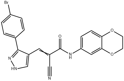 - Synonyms: (E)-3-[5-(4-bromophenyl)-1H-pyrazol-4-yl]-2-cyano-N-(2,3-dihydro-1,4-benzodioxin-6-yl)prop-2-enamide 2-Propenamide, 3-[3-(4-bromophenyl)-1H-pyrazol-4-yl]-2-cyano-N-(2,3-dihydro-1,4-benzodioxin-6-yl)-