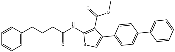 - Synonyms: methyl 2-(4-phenylbutanoylamino)-4-(4-phenylphenyl)thiophene-3-carboxylate 3-Thiophenecarboxylic acid, 4-[1,1'-biphenyl]-4-yl-2-[(1-oxo-4-phenylbutyl)amino]-, methyl ester