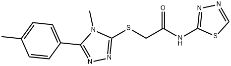- Synonyms: 2-[[4-methyl-5-(4-methylphenyl)-1,2,4-triazol-3-yl]sulfanyl]-N-(1,3,4-thiadiazol-2-yl)acetamide Acetamide, 2-[[4-methyl-5-(4-methylphenyl)-4H-1,2,4-triazol-3-yl]thio]-N-1,3,4-thiadiazol-2-yl-