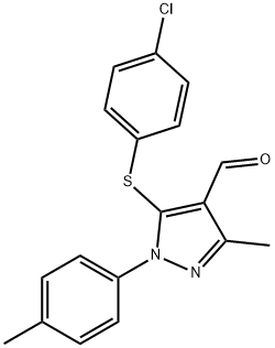 - Synonyms: 5-(4-chlorophenyl)sulfanyl-3-methyl-1-(4-methylphenyl)pyrazole-4-carbaldehyde 1H-Pyrazole-4-carboxaldehyde, 5-[(4-chlorophenyl)thio]-3-methyl-1-(4-methylphenyl)-