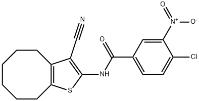 - Synonyms: 4-chloro-N-(3-cyano-4,5,6,7,8,9-hexahydrocycloocta[b]thiophen-2-yl)-3-nitrobenzamide Benzamide, 4-chloro-N-(3-cyano-4,5,6,7,8,9-hexahydrocycloocta[b]thien-2-yl)-3-nitro-