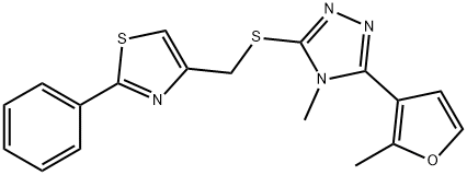 - Synonyms: 4-[[4-methyl-5-(2-methylfuran-3-yl)-1,2,4-triazol-3-yl]sulfanylmethyl]-2-phenyl-1,3-thiazole 4H-1,2,4-Triazole, 4-methyl-3-(2-methyl-3-furanyl)-5-[[(2-phenyl-4-thiazolyl)methyl]thio]-