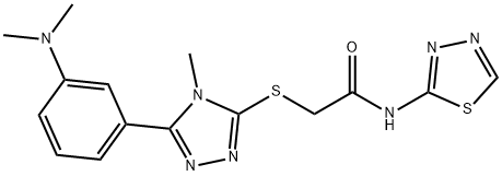 - Synonyms: 2-[[5-[3-(dimethylamino)phenyl]-4-methyl-1,2,4-triazol-3-yl]sulfanyl]-N-(1,3,4-thiadiazol-2-yl)acetamide Acetamide, 2-[[5-[3-(dimethylamino)phenyl]-4-methyl-4H-1,2,4-triazol-3-yl]thio]-N-1,3,4-thiadiazol-2-yl-