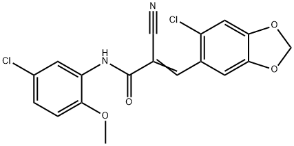 - Synonyms: (E)-3-(6-chloro-1,3-benzodioxol-5-yl)-N-(5-chloro-2-methoxyphenyl)-2-cyanoprop-2-enamide 2-Propenamide, 3-(6-chloro-1,3-benzodioxol-5-yl)-N-(5-chloro-2-methoxyphenyl)-2-cyano-