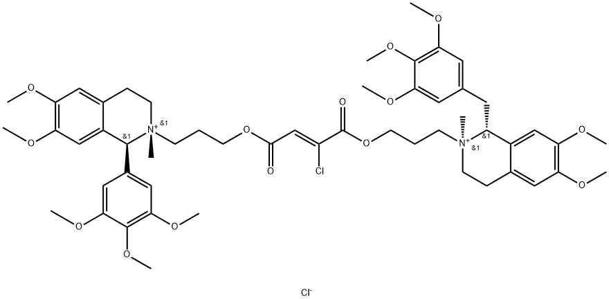 - Product Name:Isoquinolinium, 2-[3-[[(2Z)-2-chloro-1,4-dioxo-4-[3-[(1S,2R)-1,2,3,4-tetrahydro-6,7-dimethoxy-2-methyl-1-(3,4,5-trimethoxyphenyl)isoquinolinio]propoxy]-2-butenyl]oxy]propyl]-1,2,3,4-tetrahydro-6,7-dimethoxy-2-methyl-1-[(3,4,5-trimethoxyphenyl)methyl]-, chloride (1:2), (1R,2S)-