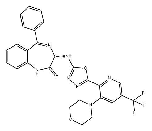 - Product Name:2H-1,4-Benzodiazepin-2-one, 1,3-dihydro-3-[[5-[3-(4-morpholinyl)-5-(trifluoromethyl)-2-pyridinyl]-1,3,4-oxadiazol-2-yl]amino]-5-phenyl-, (3S)-