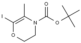 - Synonyms: tert-butyl 6-iodo-5-methyl-2,3-dihydro-4H-1,4-oxazine-4-carboxylate 4H-1,4-Oxazine-4-carboxylic acid, 2,3-dihydro-6-iodo-5-methyl-, 1,1-dimethylethyl ester