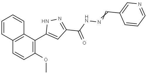 - Synonyms: 3-(2-METHOXY-1-NAPHTHYL)-N'-[(E)-3-PYRIDINYLMETHYLIDENE]-1H-PYRAZOLE-5-CARBOHYDRAZIDE 3-(2-METHOXY-1-NAPHTHYL)-N'-[(E)-3-PYRIDINYLMETHYLIDENE]-1H-PYRAZOLE-5-CARBOHYDRAZIDE 1H-Pyrazole-3-carboxylic acid, 5-(2-methoxy-1-naphthalenyl)-, 2-(3-pyridinylmethylene)hydrazide